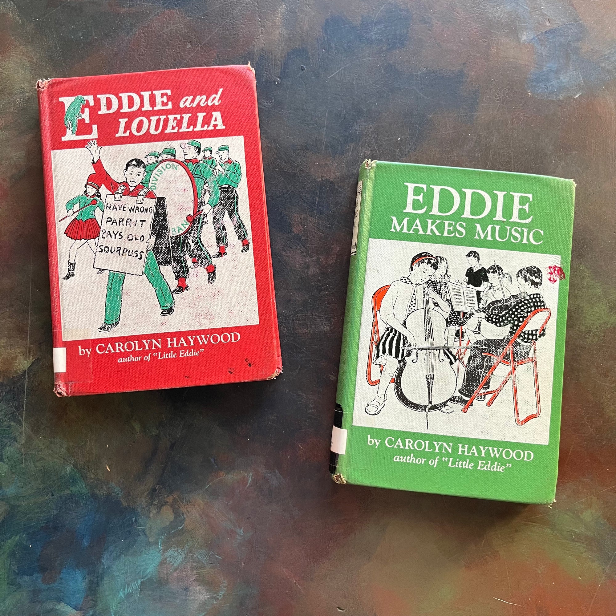 A pair of hardcover children's chapter books written by Carolyn Haywood - Eddie Makes Music and Eddie and Louella.
