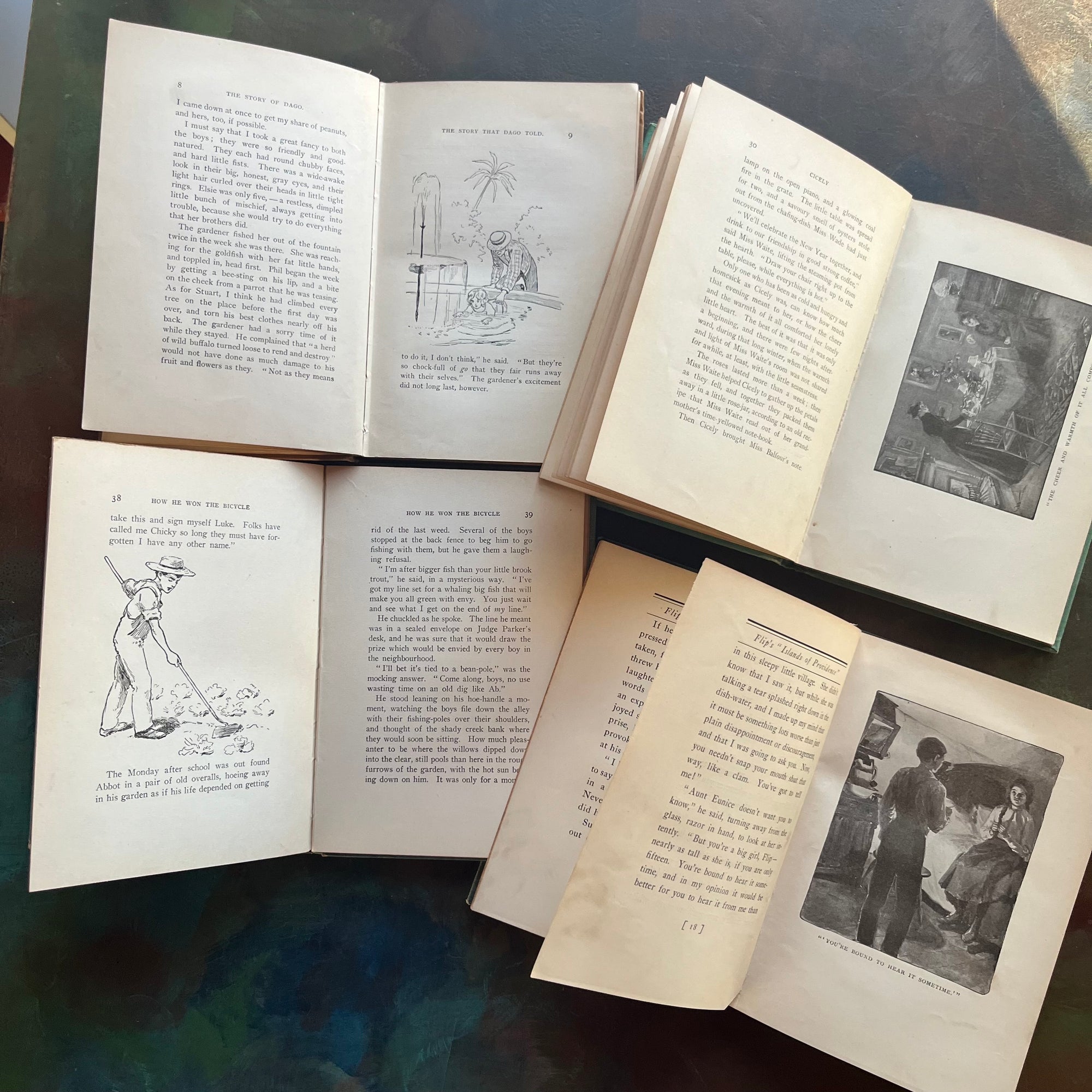 Titles:  Flip's "Islands of Providence", The Quilt that Jack Built, Cicely, The Story of Dago. These are all part of the Cosy Corner Series.