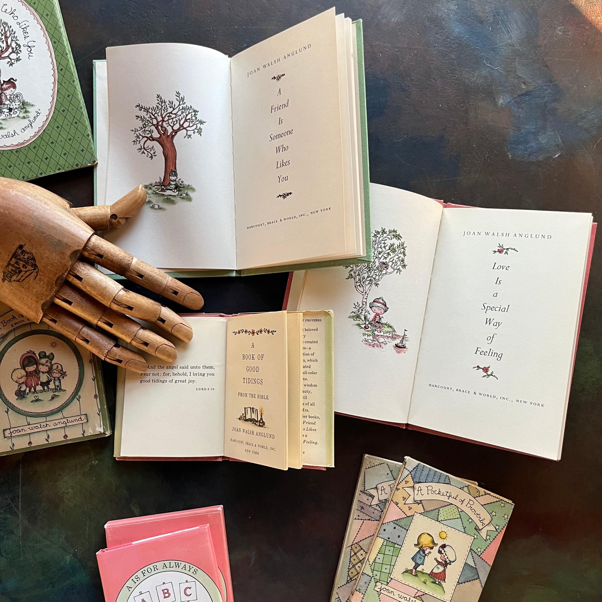 Titles: This Set of Five Joan Walsh Anglund gift books includes: Love is a Special Way of Feeling, A Friend is Someone Who Likes You, A Book of Good Tidings, A Pocket of Proverbs, and A Is For Always - An A B C Book