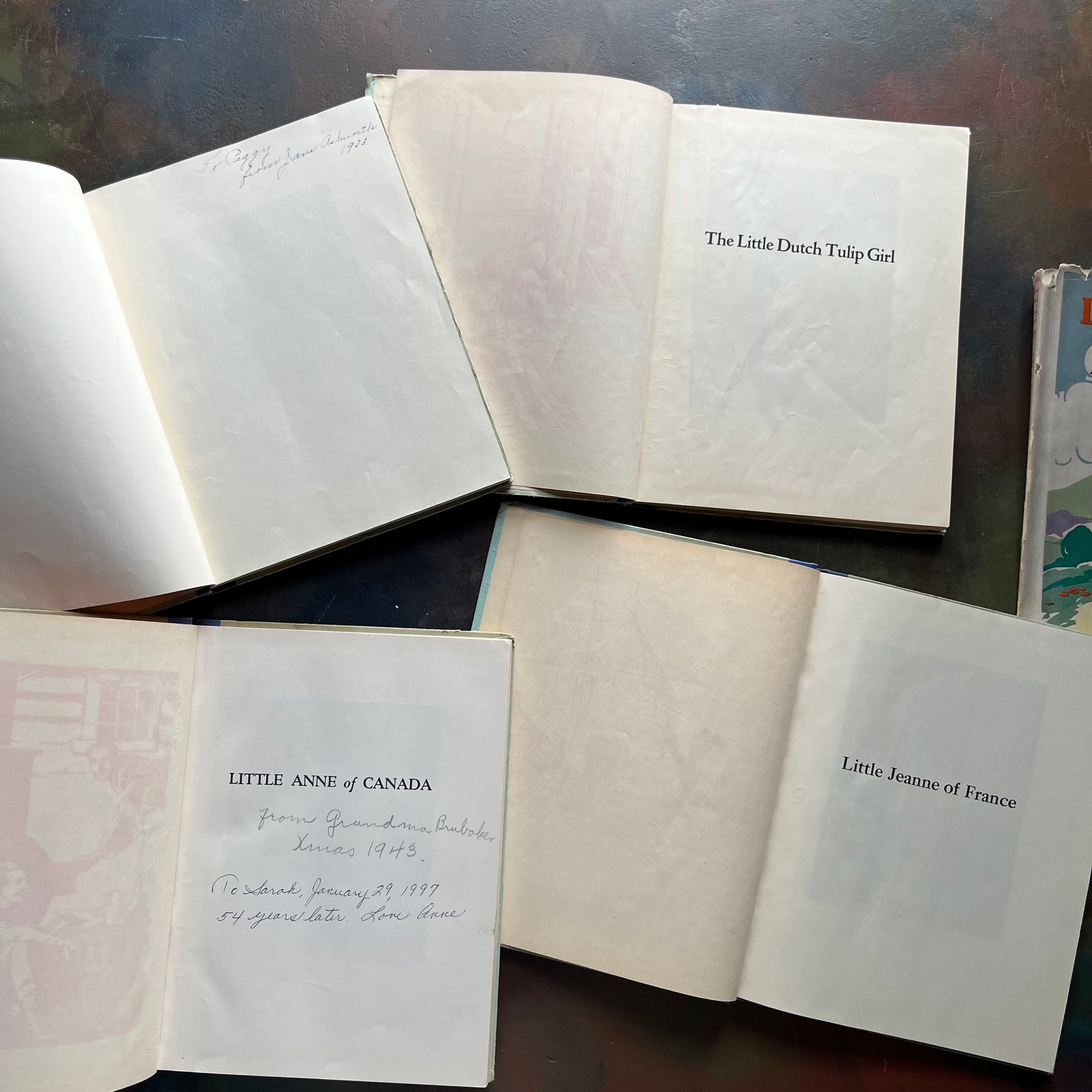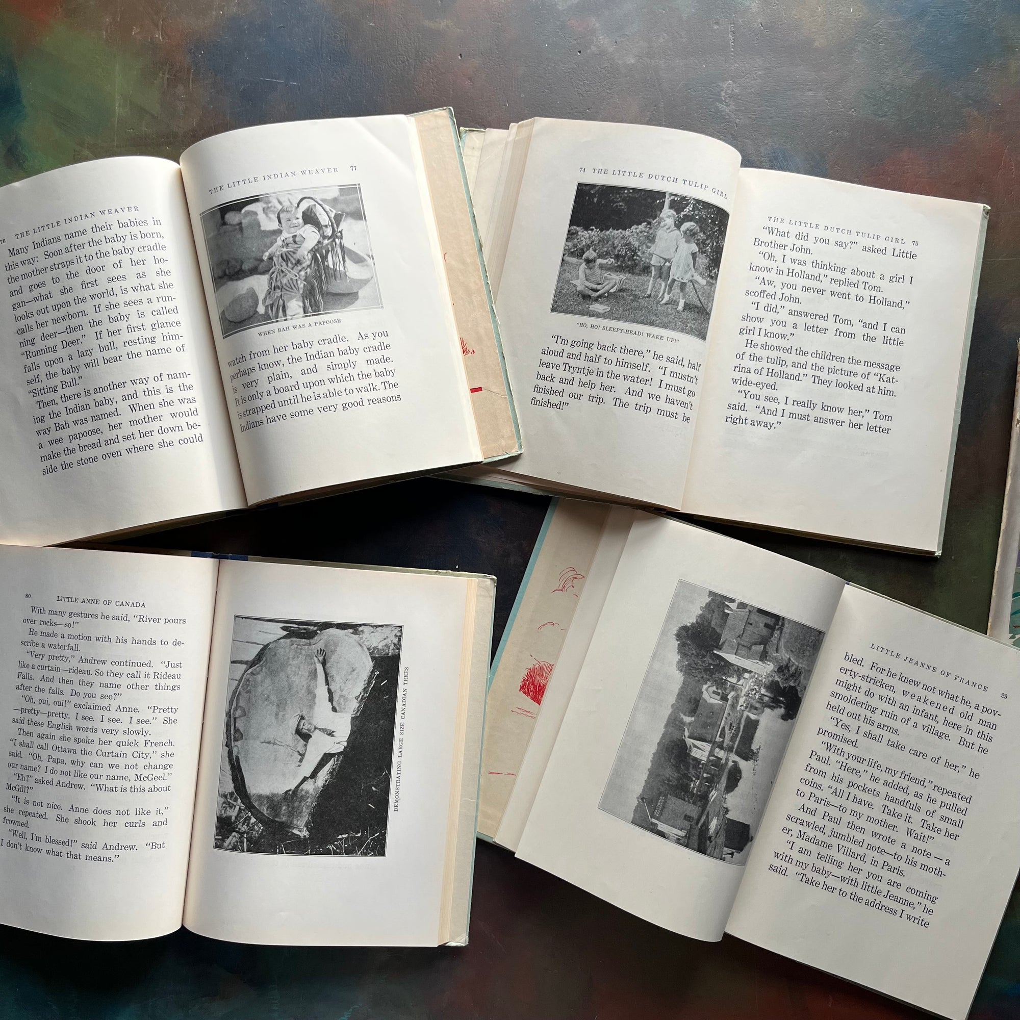 Condition: These editions show wear especially around the edges. Each book is tightly bound with no damage to the hinges. There are names written in The Little Indian Weaver, Little Anne of Canada. There is a small page tear in Little Anne of Canada. No other writing or torn pages noted. No missing pages noted.